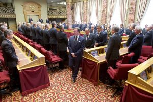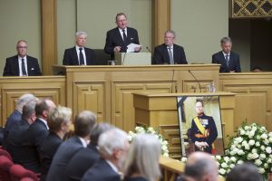 Die feierliche Sitzung, mit der das Parlament am Freitagnachmittag des ehemaligen Staatschefs gedachte, der kurz nach Ostern im Alter von 98 Jahren verstarb, wurde von den beiden Ansprachen des Kammerpräsidenten und des Staatsministers geprägt, die den Verstorbenen, sein Leben und sein Wirken ausführlich würdigten. Der Feier wohnten neben den Regierungsmitgliedern und Abgeordneten auch etliche ausländische Diplomaten und weitere Gäste bei.