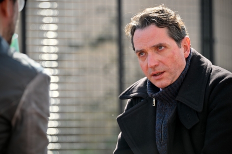 Au départ, tout indique que le meurtrier n’est autre que Patric De Boer, qui cherche à en finir avec les vieilles méthodes traditionnelles et à moderniser ce réseau mafieux aussi désuet que le vieux qui agonise à sa tête. „Pour moi, si Hochhäusler recourt au genre du polar, c’est avant tout pour raconter une histoire sur des jeux de pouvoir. ‚La mort viendra’, c’est un peu l’histoire de Macbeth dans un contexte contemporain“, explique Marc Limpach, qui incarne, précisément, le personnage de De Boer, dont la conjointe, „véritable Lady Macbeth“, essayera de le convaincre de passer à l’acte lors de la scène de squash tournée en ce jour printanier au Centre sportif de la Kockelscheuer.