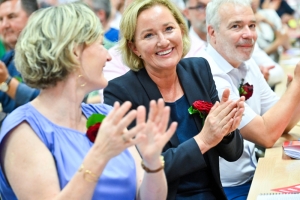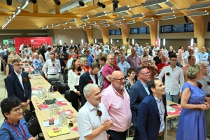 Schon fast peinlich berührt steht Paulette Lenert am Sonntagmittag auf der Bühne des Kulturzentrums in Leudelingen. „Paulette, Paulette, Paulette“, skandieren die LSAP-Delegierten lautstark. Gründe für die Euphorie hat es für die LSAP-Mitglieder genügend gegeben. Nicht nur wurde das Wahlprogramm einstimmig angenommen, was es laut einigen LSAP-Mitgliedern noch nie gegeben hat – auch ist Paulette Lenert mit 225 von 226 möglichen Stimmen als LSAP-Spitzenkandidatin bestätigt worden. „Ihr könnt auf mein Engagement zählen, um diese Wahlen zu gewinnen“, ruft Lenert in den Saal. Zusammen wolle man jetzt in den Wahlkampfmodus schalten und für die sozialistischen Ideen kämpfen.