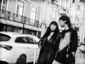 Dass Lobo ein großartiger Fotograf ist, der die Kunst des Porträts genauso beherrscht wie die der Street Photography, ist hinlänglich bekannt. In „Dans la ville blanche“ ist dies einmal mehr in Schwarz-Weiß ebenso wie in Farbe zu sehen: nachts auf den Straßen mit ihrem nassen Kopfsteinpflaster, in den Kneipen und Cafés, wo Jazzmusiker sich in einen Rausch spielen, aber auch in den städtischen Momentaufnahmen und Schnappschüssen ebenso wie in den Bildern von einzelnen Menschen, die innehalten, von Paaren wie von Passanten, etwa Filipa und Brian, einem jungen Paar, das sich am Tejo-Ufer umarmt und küsst – und zu Titelfiguren des Buches wird.