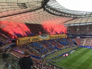 In der zweiten Hälfte musste das Spiel mehrfach unterbrochen werden. Die Rauchwolken, die durch den Einsatz von pyrotechnischem Material entstanden waren, verdeckten fast das gesamte Spielfeld und später wurden sogar kleine Leuchtraketen aufs Feld gefeuert.