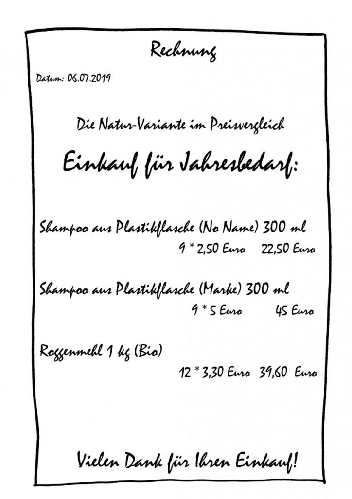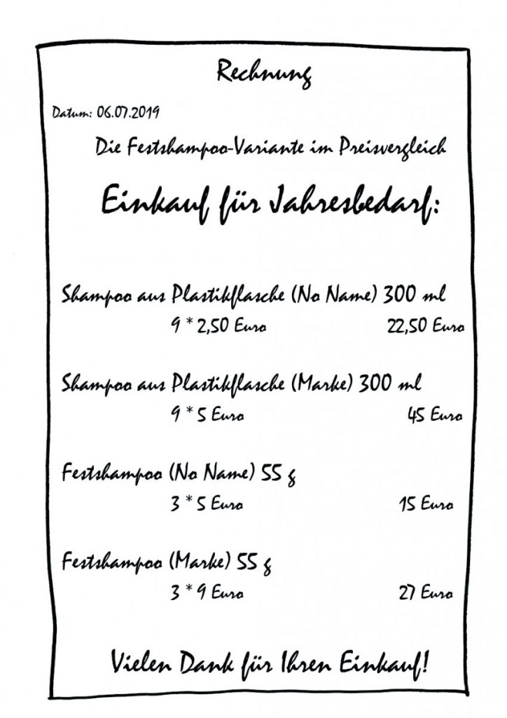 Wer jetzt Angst hat, dass die Umstellung sein Portemonnaie belasten wird, kann unbesorgt sein. Meistens ist das plastikfreie Shampoo sogar kostengünstiger als die handelsüblichen Produkte.