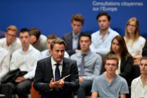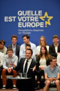 Nathalie Reuter wollte gerade das Mikrofon an eine Person auf der anderen Seite des Saals weiterreichen, da unterbrach Xavier Bettel die Moderatorin: „Es ist doch einfacher, wenn Sie das Mikrofon von links nach rechts reichen“, so Bettel in charmantem, aber bestimmtem Tonfall. „Ein proaktiver Premier“, gab Reuter sich geschlagen. Und als die fragende Person sich dann in den Gedanken verhedderte und Publikum sowie auch Moderatorin langsam ungeduldig wurden, rettete Bettel den Moment: „Nehmen Sie sich Zeit. Das ist Europa. Woanders wären Sie schon seit zwei Minuten im Gefängnis.“