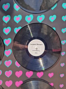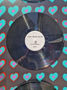 Hinter den Sitzen auf dem Eurovision Square wartet eine kleine Fotogelegenheit auf die Fans. Das Eurovision-Herz ist hier umgeben von Schallplatten mit den Titeln vorheriger Gewinner. Die Luxemburger Songs habe ich auf jeden Fall alle gefunden. Ob sich Laura Thorn hier einfügen wird? Erst mal muss der Finaleinzug gesichert werden.