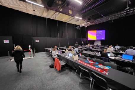 Und als es dann mit dem letzten noch freien Platz endlich „Luxemburg“ heißt, bricht am Luxemburger Tisch und den „adoptierten“ Nachbarn großer Jubel aus, während man den vorbereiteten Artikel mit zittrigen Händen publiziert. Dabei ist man doch eigentlich nur vor Ort, um über das Resultat zu berichten. Woher jetzt das ganze Adrenalin kommt, ist ein kleines Rätsel. Rundherum gratulierten plötzlich die Kollegen aus anderen Ländern, manche fragen sogar die Kollegin vom L’essentiel nach einem Interview, um über den Sieg Luxemburgs zu sprechen. Man realisiert: Das hat einem doch viel mehr bedeutet, als man vorher dachte.  Dann steht die Pressekonferenz mit den qualifizierten Teilnehmern an und eigentlich sollte der Arbeitsmodus wieder greifen. Doch bis spät in die Nacht hinein wirkt der Dienstagabend wie ein Fiebertraum, den man mit den anderen Journalisten vor Ort teilt.
