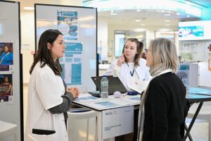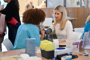 Mittels eines Schnelltests wurde der Blutzuckerspiegel ermittelt. Dazu gab es Fragen und Erklärungen zu Ernährungs- und Bewegungsgewohnheiten. Zum Abschluss folgte ein dreiminütiger Ausdauertest bei einem Physiotherapeuten: drei Minuten lang ein Trittbrett auf- und absteigen. Eine Minute danach wurde der Puls gemessen. In einer Tabelle kann dann jeder ablesen, ob seine Kondition der Norm entspricht.