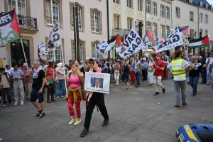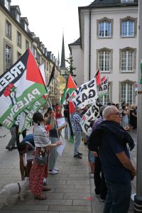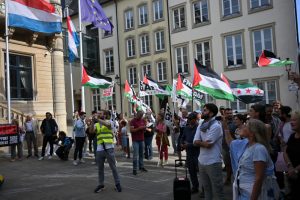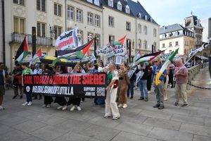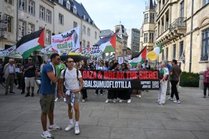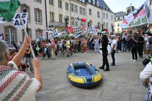 „Stoppt den Genozid“, „Sanktionen, jetzt!“ und „Unterstützt die Flotilla“: Mit diesen Parolen zogen Demonstranten am Samstagnachmittag durch die Straßen Luxemburgs: Um 15 Uhr ging es am Glacis los. Der von der Bewegung „Letz Act for Palestine“ organisierte Protest soll wöchentlich stattfinden. Unterstützt wird die Aktion durch das „Comité pour une paix juste au Proche-Orient“, Greenpeace, Amnesty International und die „Action solidarité tiers monde“.
