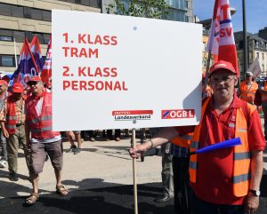 Vorerst sollen die Fahrten der Trambahn nicht blockiert werden, so der Präsident des FNCTTFEL-Landesverbandes Georges Merenz uns gegenüber – vorerst, denn sollten die aktuell geführten Verhandlungen mit Luxtram keine zufriedenstellenden Resultate bringen, werde der Arbeitskampf härter.