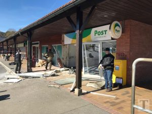 Luxemburg hat keine Ruhe vor gefährlichen Kriminellen. Nach dem brutalen Überfall am Dienstag auf ein Uhrengeschäft in der Hauptstadt haben Räuber in der Nacht auf Mittwoch einen Geldautomaten der Postfiliale in Niederanven ins Visier genommen. Um an das Geld zu kommen, haben die Unbekannten um 3.50 Uhr den Geldautomaten aus der Wand gesprengt. Durch die Explosion wurde das angrenzende Postbüro komplett verwüstet.