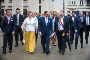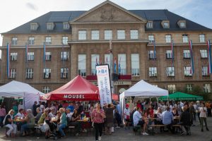 Nach zwei Jahren Corona-Pause konnte Esch wieder mit einem Volksfest auf dem Rathausplatz in den Nationalfeiertag feiern. Das erbgroßherzogliche Paar hat den Brillplatz gegen 17.00 Uhr erreicht. Nach dem Aufmarsch der Vereine vor dem Rathaus gegen 17.30 Uhr fand der offizielle Empfang im Rathaus um 18.00 Uhr statt. Beim Volksfest traten ab 20.00 Uhr die Soul Cookies auf, ehe um 23.00 Uhr das Feuerwerk abgebrannt wurde. Danach gehörte die Bühne bis 2.30 Uhr der Band Timeless.