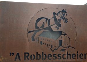 „Die Rasse hat sich permanent verändert“, sagt Charel Braquet (29). Er betreut die Workshops und die zehn Ardennerpferde der „Robbesscheier“, die vor allem im Wald in der Holzwirtschaft eingesetzt werden. Später ersetzen Landmaschinen und Traktoren die Pferde und sie werden zu Schlachtvieh hochgezüchtet, was ihre massige Erscheinung erklärt. Heute setzen Züchter darauf, das Gewicht zu reduzieren, um sie wieder als naturschonende Arbeitstiere einzusetzen. Gerade aktuell ist das Naturzentrum als Kompetenzzentrum für den Umgang mit den Tieren zertifiziert worden.