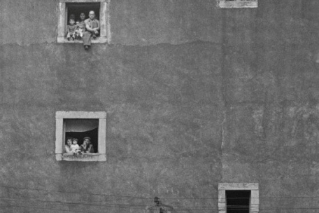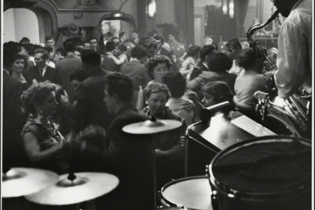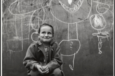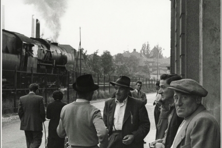 Cette „vision d’une ville“ de 1956, titre du chapitre avec les photos de Romain Urhausen dans le livre du cinquantenaire, est réductrice et fort éloignée de la diversité de l’œuvre photographique de Romain Urhausen. A Esch comme à Paris, Urhausen photographiait la vie, toute la vie, dans une optique humaniste. Dans son premier ouvrage personnel, Die Stadt – Notre ville (1961), avec des textes de Nic Weber, il montre son Esch, différent de l’image officielle de la ville du livre du cinquantenaire. En 1961, les photos montrent les absents de 1956. Quelques exemples sont reproduits en illustration de cet article: jeunes hommes et femmes enlacés et dansant dans les dancings de la ville; ouvriers italiens discutant et roulant une clope devant un café dans le quartier du Brill, boulevard Prince Henri, alors qu’un train passe; l’arrière de la Casa grande dans la Hoehl où les familles (de musiciens et d’antifascistes) Peruzzi, Malvetti, Baschera, Turci suivent (gratuitement) un match de la Jeunesse d’Esch: les „Russenbaracken“ en bois d’Esch-Raemerich, où étaient entassées les Ostarbeiterinnen soviétiques sous l’Occupation allemande, reconverties en logements sociaux après la guerre; un petit artiste en herbe au regard moqueur assis devant son œuvre murale.