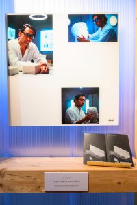 Der Ort selbst erzählt Geschichte: Im Kulturzentrum befindet sich auch die ehemalige Wirkungsstätte des Bildhauers Albert Hames (1910-1989). Sein Atelier wurde renoviert und an den Neubau angegliedert. Es blieb erhalten und sieht so aus, wie er es 1989 hinterlassen hat. Seine klaren, schnörkellosen Werke, wie beispielsweise die Statue des Bürgermeisters und Abgeordneten Jean-Pierre Bausch im Rümelinger Stadtpark, präg(t)en das Luxemburg der Nachkriegszeit. Jetzt trifft seine Kunst auf die digitalen Welten von heute. Mit einem charmanten Kunstgriff wurde Hames selbst in die Gegenwart katapultiert: Auf Basis eines einzigen Fotos hat Künstler und KI-Entwickler Misch Strotz von LetzAI einen virtuellen Avatar geschaffen, der die Besucher in der Ausstellung persönlich begrüßt – genau an der Schnittstelle zwischen Alt und Neu. Ich weiß zwar nicht, wie mir geschieht, scheint Hames augenzwinkernd sagen zu wollen, aber er sei wieder da – „dank einer mir völlig unbekannten Technik“.