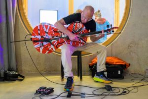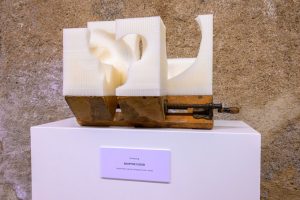 Die Ausstellung „Re-connected“ macht Ernst mit dem Anspruch, multisensorisch zu sein: Lichtprojektionen, Klangskulpturen, digitale Fotografie, VR-Erlebnisse – alles greift ineinander, nichts bleibt zweidimensional. Mit dabei sind internationale und luxemburgische Künstler wie Miikka Heinonen, Boris Loder und Steve Gerges. Seine audiovisuellen Skulpturen „Towers“ draußen im Garten des Kulturzentrums verknüpfen das industrielle Erbe des Südens mit futuristischen Visionen. Bemerkenswert ist auch eine klangbasierte Skulptur, die aus einem improvisierten Live-Duett zwischen Cellist André Mergenthaler und dem Elektrokomponisten Pit Molling hervorgegangen ist. Ihre Klänge wurden per 3D-Druck in Form gegossen. Musik wurde zu Materie und so entstehen Werke, die nicht nur gehört, sondern auch gesehen, ja auch angefasst werden können.