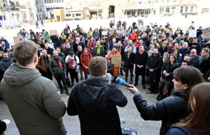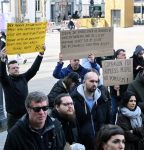 Um 13:30 Uhr, eine Stunde vor Beginn der Diskussion einer Motion über das Bettelverbot im städtischen Gemeinderat, begannen die Organisatoren der Demo ihre emotionalen Ansprachen, allen voran Fabricio Costa von „déi jonk gréng“. Er äußerte Empörung darüber, wie Bürgermeisterin Lydie Polfer (DP) und Innenminister Gloden das Bettelverbot ohne angemessene Berücksichtigung rechtsstaatlicher Prinzipien durchgesetzt haben: „Wenn man die Gesetze umgeht oder so biegt, wie sie einem gerade in den Kram passen, die Menschen offen belügt und […] bei Kritik dann auch noch die Meinungsfreiheit von Künstlerinnen und Künstler attackiert, das sind alles autoritäre und populistische Muster, die man vielleicht eher einer rechtsradikalen als einer Mitte-rechts-Regierung zugetraut hätte.“