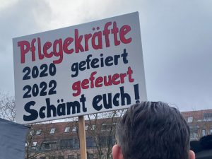 Mit Druck, Vorwürfen, Ausgrenzung und bevorstehendem Jobverlust haben die meisten hier Erfahrung. Gehört werden ihre Argumente oder Bedenken nirgendwo. Irgendwann haben sie angefangen zu schweigen, sich zurückgezogen. Seit Dezember 2021 jedoch machen sie ihrem Ärger Luft. Mit Hupen, Trommeln, Trillerpfeifen oder Megafonen und Musikboxen. „Mittlerweile treffe ich hier auch Geimpfte“, sagt Gregor. „Die haben die Nase voll vom Boostern, fühlen sich von der Politik belogen und finden die Spaltung unerträglich.“
