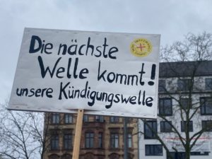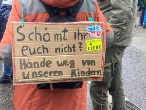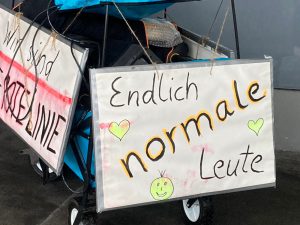 Was sie von der Presse halten, verdeutlicht ein Plakat. „ARD/ZDF – Wir schalten euch ab“, steht darauf. Immerhin haben die Proteste es in die Medien geschafft und sie waren Thema im Landesparlament. Zur Schlusskundgebung, da hatte es aufgehört zu regnen, gab es noch Informationen mit auf den Weg. Die Bühne vor der Kongresshalle ist frei für jeden, der den Mut hat, über seine Situation oder Gedanken zu sprechen.