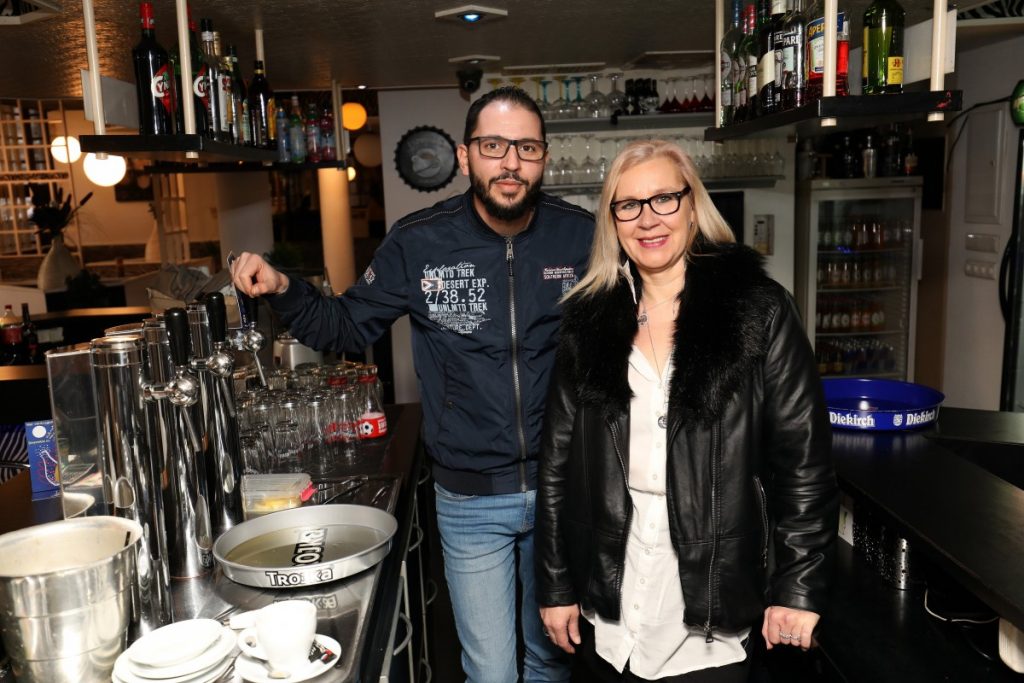 Für Schatten sorgen auch die vielen Flaggen, die Sam in den Fensterrahmen hat anbringen lassen: „Eigentlich sollen sie zeigen, dass hier jeder willkommen ist“, sagt er. Eine Flagge hängt sogar an der Decke direkt über der Tür, nämlich der „Roude Léiw“. Wer seinen Drink lieber an der frischen Luft genießt, darf es sich auf der Terrasse bequem machen. So oft es geht stellen Sam und Agnieszka, die Chefkellnerin, die perfekt Luxemburgisch spricht, Tische und Stühle raus und bei Kälte und Wind zwei Heizstrahler hinzu. Raucher wissen das zu schätzen.