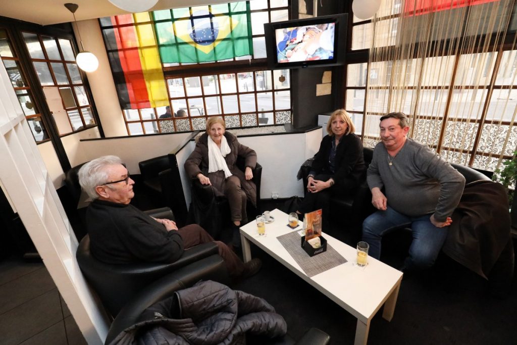 Möglicherweise seit Eröffnung des Lokals. Damals allerdings nicht als Café, sondern als Hotel-Restaurant, wie sich Lorenzo, Stammkunde, Gelegenheitskellner und Rausschmeißer, erinnert. Unten sei das Restaurant und oben im ersten Stock, die Hotelrezeption gewesen. Den Speiseaufzug, mit dem das Essen aus der Küche im Keller hochgebracht wurde, gibt es noch. Die Küche auch. Sie ist jedoch wegen Feuchtigkeit, die nahe Alzette lässt grüßen, nicht mehr zu gebrauchen