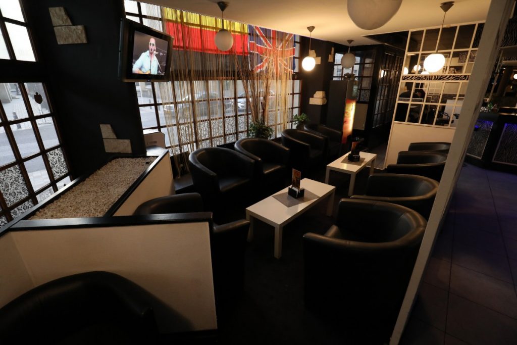 Auch die kleine Kammer, die, in Smartphone-fernen Zeiten, als Telefonkabine diente, besteht noch. Sie befindet sich links neben dem Eingang zu den Toiletten. Und die Treppe, die nach oben zur Rezeption des Hotels führte, ist ebenfalls noch vorhanden, allerdings wird sie unterhalb der Decke von einer Mauer unterbrochen. Über dem Café befinden sich heute Wohnungen.