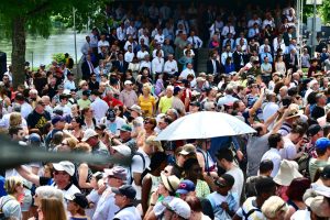 Es waren dann aber die vielen Schüler, die am lautesten jubelten, als die zahlreichen Polizeimotorräder den sich nähernden Korso ankündigten. Enttäuscht wurden diejenigen, die sich extra in der Mitte der Brücke einen der Plätze in der prallen Sonne gesichert hatten. Denn nicht dort, sondern erst kurz dahinter nahm Anne Kremer die Flamme in Empfang. Alle, die einen Schattenplatz unter der Brücke bevorzugt hatten, hatten damit den besten Blick auf den historischen Moment. Für diesen waren vor allem Olympia-Fans aus der näheren Umgebung nach Schengen gekommen. „So was erlebt man wohl nur einmal im Leben, das wollten wir nicht verpassen“, erklärte eine Gruppe Luxemburgerinnen, die inzwischen im deutschen Perl wohnt.