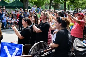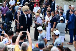 Vor dem Europamuseum wurde die luxemburgische Fackelträgerin schließlich von viel Prominenz empfangen. Emotional wurde es, als sie von Edmond Schmitt begrüßt wurde, der bereits 1948 mit dabei war. Mit „La flamme, la flamme“-Sprechchören feierten schließlich die Schüler diesen kurzweiligen Moment, denn nach gerade einmal einer halben Stunde hatte die Flamme Luxemburg auch schon wieder verlassen. Für die Ehrengäste ging es weiter zu einem privaten Empfang. Wer weiterfeiern wollte, durfte dies ein paar hundert Meter weiter in Perl, wo direkt neben der Moselbrücke ein Volksfest stattfand.