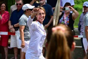 Die ehemalige Tennisspielerin und dreifache Olympiateilnehmerin Anne Kremer durfte die Fackel in Luxemburg in Empfang nehmen Foto: Editpress/Alain Rischard