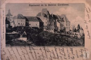 Eine Ansichtskarte um 1900 des Fotografen Charles Bernhoeft liefert uns mit der Bildüberschrift „Pensionnat de la doctrine chrétienne“ einen ersten Hinweis auf die Nutzung des Schlosses nach der Epoche der Wiltzer Grafen. Von 1851 bis 1950 betrieben Schwestern der christlichen Lehre hinter dem Schlossgemäuer ein Internat. Wie im „Exposé de la situation administrative du Grand-Duché de Luxembourg“ von 1874 nachzulesen ist, handelte es sich hierbei um ein Internat für Mädchen.