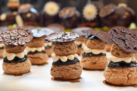 Tatsächlich ist die Gourmet-Show, so wie sie im „Quai Steffen“ veranstaltet wurde, nur die Spitze des Eisberges. Die in der Vereinigung zusammengeschlossenen Konditoren treffen sich regelmäßig, um sich weiterzubilden und auszutauschen. Neun von ihnen haben ihre Arbeiten beim Frühjahrs-Rendezvous mit dem Thema Schokolade vorgestellt, darunter die beiden Chocolatières Lola Valerius und Alexandra Kahn mit ihren Pralinen, sowie die Pâtissière Alexandra Pancher mit einem Kuchen mit dreifacher Schokoladenfüllung.