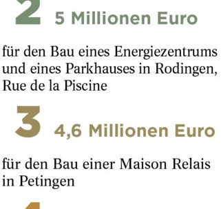 „Es ist vieles in Planung“, sagte Halsdorf am Freitag. Auf Petingen kommen in den nächsten Jahren also noch einige größere Baustellen zu. Dazu gehört u.a. das neue Polizeikommissariat, das mit einer höheren Zahl an Personal in der Region das Sicherheitsgefühl der Bevölkerung stärken soll. Für den Abschluss des Vorprojekts sind 2026 rund 300.000 Euro vorgesehen. Deutlich weiter vorangeschritten ist das Projekt der „Maison intergénérationnelle“, die in Rodange entstehen soll. Dafür sind 1,5 Millionen Euro eingeplant. Das Projekt wird in Kürze im Gemeinderat vorgestellt und soll – sofern es nach dem Wunsch des Schöffenrats geht – auch direkt verabschiedet werden. Bereits in wenigen Monaten könnten dann die Bauarbeiten beginnen. Auch beim Projekt „Maison du Son“, das Petingen gemeinsam mit der Universität Luxemburg vorantreibt, nähert man sich der „heißen Phase“. Für 2026 sind hier 4 Millionen Euro vorgesehen. Bei den Wohnungsbauprojekten stehen 2026 nicht viele größere Sachen auf dem Plan, doch es werden die Grundsteine für die Erschließung von neuen Vierteln gelegt: 2,7 Millionen Euro sind u.a. für den Kauf von Grundstücken vorgesehen.
