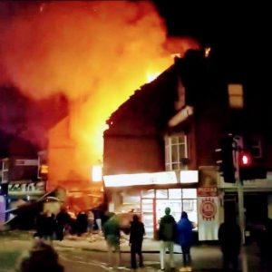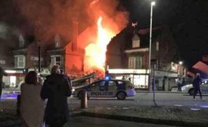 Örtliche Medien berichteten unter Verweis auf Augenzeugen, es habe einen lauten Knall gegeben, der an eine Explosion erinnert habe. Dabei seien ein Lebensmittelgeschäft und ein Haus zerstört worden. Auf Twitter wurden Fotos und Videos gepostet, in denen aus einem Gebäude schlagende Flammen zu sehen sind.