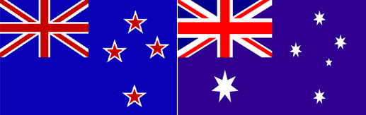 Australiens Flagge zieren ebenfalls Union Jack und Sterne. Nur sind es in diesem Fall sechs weiße Sterne. Fünf davon stellen ebenfalls das Kreuz des Südens dar. In ihrer derzeitigen Form gibt es diese Flagge offiziell erst seit 1954, eine ähnliche Version allerdings seit 1901.
