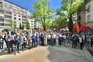 Milde Temperaturen und ein praktisch wolkenfreier, blauer Himmel: Da zog es zahlreiche Schaulustige, darunter auch viele Kinder, ins Stadzentrum zur Einweihung des Düdelinger „Shared Space“. Natürlich ließen auch einige Politiker es sich nicht nehmen, dort vorbeizuschauen und sich, kurz vor den Wahlen, unter das Volk zu mischen.