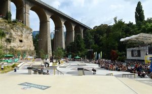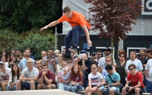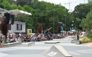 „Im Fokus steht das Skaten, konkreter Street Skateboarding. Das wollen wir unbedingt pushen“, so Jungbluth. Jeder Rider erhielt zwei „Runs“, bei denen er seine beeindruckendsten Tricks präsentieren durfte. Unter den 15 von der fünfköpfigen Jury ausgewählten Fahrern stach besonders der 15-jährige Holländer Mano Wolf hervor, der als jüngster Teilnehmer direkt großen Applaus vom Publikum einheimste. Aber auch die Luxemburger Sven Kieffer und Yves Hames wussten ihr Skateboard ordentlich zu „handlen“. Zwischendurch sorgten die sogenannten „Cash Games“ für die nötige Stimmung. „Hierbei suchen wir einen Spot aus, beispielsweise ein Geländer oder die Bowl, und die Skater müssen hier dann ihre coolsten Tricks zeigen. Je nach Schwierigkeitsgrad und Feedback des Publikums gibt es dann direkt Cash aus unserem ‚Stack of Money’“, erklärte Jungbluth. Den ganzen Tag über sorgten ebenfalls „Live Music Pop-up Acts“, wie etwa ein Gitarrist oder Violinist inmitten des „Village“ für die richtigen Beats. „Gestern hatten wir eine Punk-Band aus Frankreich zu Gast, die im Bowl gerockt hat, während die Skater um sie herumfuhren. Abends haben dann die DJs vom ‚Gudde Wëllen‘ und ‚Ënnert de Steiler‘ unter der Brücke Gas gegeben“, so Jungbluth.