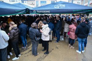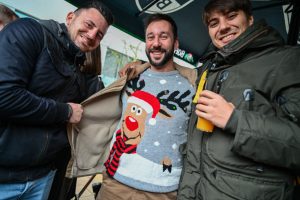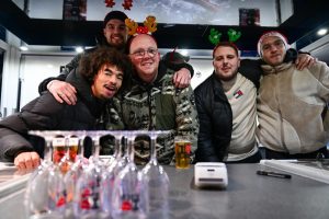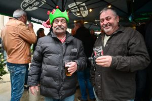 Weiße Weihnachten liefert das Wetter in diesem Jahr ja nicht gerade. Das hat den Menschen in Esch aber nicht die Feierlaune verdorben. An gleich zwei Orten trafen sich am Dienstag viele Escher: Am Brill-Platz ging es schon um 14 Uhr beim Steelpunch los, wo ganz besinnlich – und mit Bier und Crémant – aufs Weihnachtsfest angestoßen wurde. Auch vor der Kufa gab’s eine Weihnachtsfeier. Dort trank sogar der Weihnachtsmann ein Bier mit, wie unsere Fotos beweisen.