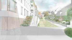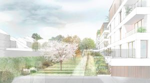 Seit Mitte Januar sind die Arbeiten am alten Sitz im Gange. Langsam wird begonnen, den hinteren und seitlichen Teil des Gebäudes für den Abriss vorzubereiten. Mit dem eigentlichen Baubeginn der Wohnblöcke ist nicht vor April 2022 zu rechnen. Auf dem Areal entstehen drei komplett neue Wohnblöcke mit jeweils 17 bzw. 16 Wohneinheiten, eingebettet in eine Grünanlage. Der vierte Block ist das alte Verlagsgebäude zur Kanalstraße hin. Hier werden 23 Wohnungen integriert, sodass insgesamt 73 Wohneinheiten, vom kleinen Studio bis hin zum geräumigen Dreizimmerappartement, entstehen werden. Das unter Denkmalschutz stehende alte Hauptgebäude mitsamt seinem Eingangsbereich und der Fassade mit dem Relief des Bildhauers Albert Kratzenberg (1890-1966) wird den Plänen nach um zwei Stockwerke erhöht. Treppe und Fassade mit den charakteristischen Fensterstrukturen werden ebenso erhalten wie innerhalb des Gebäudes die Glaskuppel im Eingangsbereich sowie das Treppenhaus.