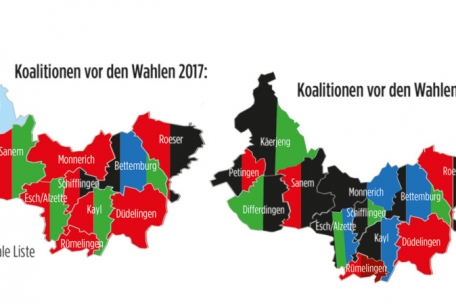 Sogar Kayl wird inzwischen von einem CSV-Bürgermeister geführt, nachdem der langjährige LSAP-Rat und -Schöffe Marcel Humbert die Seiten gewechselt hatte. Wie bewerten die Bürger den Nicht-Respekt des Wählerwillens beim Machtwechsel? Welche Rolle spielen die „neuen“ Parteien ADR und Piraten, wem kosten sie Stimmen? Und kann die LSAP den Verlust ihres langjährigen Bürgermeisters und Zugpferds John Lorent kompensieren? Genau wie Kayl war und ist das benachbarte Rümelingen eine sozialistische Hochburg. Zwar büßte die LSAP 2017 ihre absolute Mehrheit ein, weil sie über 10 Prozent ihrer Stimmen an die neue DP-Liste verlor. Doch konnte sie mit der KPL koalieren und der populäre Henri Haine blieb Bürgermeister. Dass die Kommunisten ihren Sitz behalten, ist fraglich, sodass sich am Sonntag eine neue Konstellation bilden könnte.