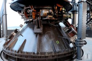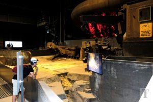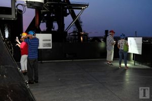 Die Temperatur am Samstagabend stimmte schon mal: Gefühlte 45 Grad Celsius schlugen einem beim Aufstieg zum Hochofen entgegen und ließen zumindest erahnen, wie sich hier früher die Stahlarbeiter in ihren hitzebeständigen Schutzanzügen gefühlt haben müssen. Kurz nachdem sie den Abstich vorgenommen und das rund 1.500 Grad heiße und flüssige Roheisen aus dem Hochofen fließen ließen, werden auch sie sich sicherlich wie in einer Sauna vorgekommen sein.