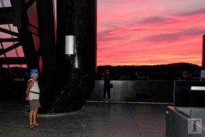 Hatten am frühen Samstagabend lediglich eine Handvoll Besucher den Weg nach Belval gefunden, so sollte sich dies bei einsetzender Dunkelheit ändern. Immer mehr Menschen wollten sich den Anblick des Lichtermeeres inmitten der Industriedenkmäler nicht entgehen lassen. Dabei boten sich den Besuchern eigentlich zwei grundsätzlich verschiedene Anblicke: Wer am frühen Abend ab 18.00 Uhr die rund 180 Stufen zur „Gicht-Plattform“ in 40 Metern Höhe erklomm, dem bot sich ein überwältigender Rundumblick auf die Minetteregion.