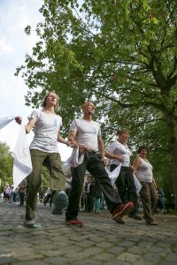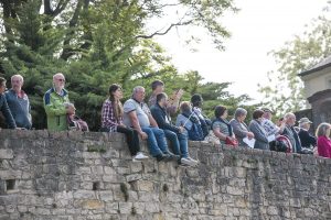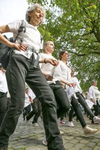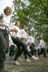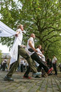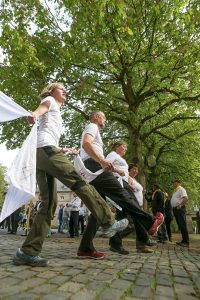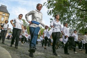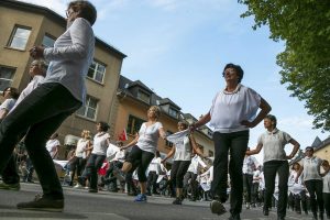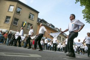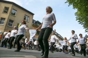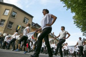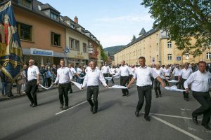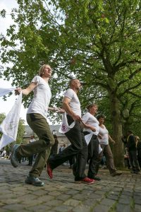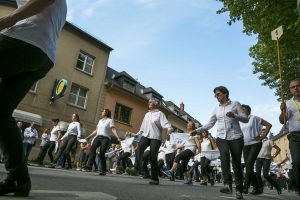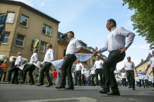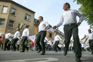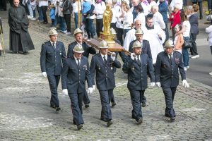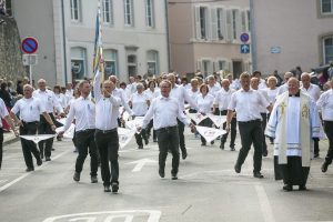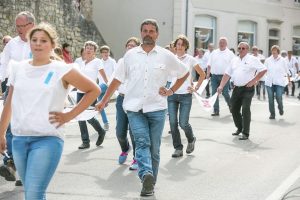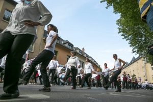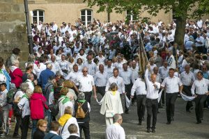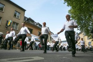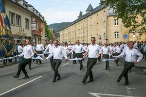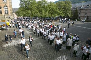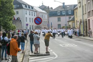 Bereits in den frühen Morgenstunden trafen die ersten Pilger aus den benachbarten Eifelgemeinden in Echternach ein. Kurz nach 9 Uhr hielt Erzbischof Jean-Claude Hollerich seine traditionelle Ansprache im Abteihof. Anschließend machten sich die Pilger betend und springend zu Polkamusik durch die Straßen der Stadt. 41 Pilgergruppen aus Luxemburg, Deutschland, Belgien und den Niederlanden nahmen an der Springprozession teil. Dass diese mehr als nur eine religiöse Prozession ist, bewiesen die vielen mit weißen Hemden und dunklen Hosen bekleideten Menschen jeden Alters, die sich rund um die verschiedenen Kneipen und auf der Kirmes versammelt hatten.