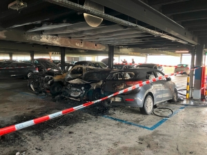 Das mehrstöckige CFL-Parkhaus in Esch-Belval ist am Dienstagvormittag gegen 10.40 Uhr von dichtem Rauch umhüllt worden. Stimmen aus Lautsprechern riefen dazu auf, sowohl das Parkhaus als auch das angrenzende Bahnhofsgebäude zu evakuieren. Der Grund: Mehrere Autos standen in Flammen. Das meldet das CGDIS in seinem 11-Uhr-Bericht. Die Feuerwehr aus Esch, Sassenheim-Differdingen und Monnerich begaben sich vor Ort, um die Flammen zu bändigen. Ersten Informationen des Tageblatt zufolge soll der Brand im ersten Stock ausgebrochen sein. Es soll kein Elektroauto gewesen sein, von dem das ursprüngliche Feuer ausgegangen ist. Auch ein Hubschrauber drehte seine Runden über dem Parkhaus. Niemand wurde bei dem Vorfall verletzt, geht aus dem Bericht hervor.
