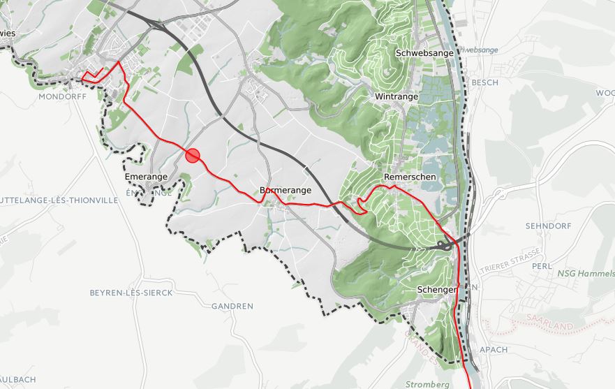 Die Tour-Strecke durch Luxemburg von Mondorf aus.