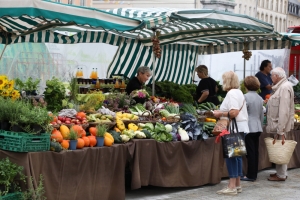 20230715, Luxembourg, place Guillaume II, Der "Stater Maart" ist zurück auf dem "Knuedler", Situé au cœur de la ville, le Stater Maart, est un marché bihebdomadaire qui offre un vaste choix produits régionaux et saisonniers, Le Stater Maart se tiendra à nouveau sur la place Guillaume II dès le samedi 15 juillet 2023, Foto: Editpress/Didier Sylvestre