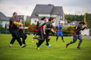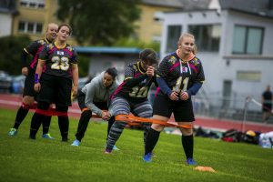 Football ist aber wahrlich nicht die typische Frauensportart. Deshalb erscheint es den meisten wohl auch ein wenig merkwürdig, wenn Frauen dieser Aktivität nachgehen. „Es ist alles andere als die klassische Sportart für das weibliche Geschlecht. Wir haben als Team auch schon etliche Male versucht, auf ‚Braderies‘ oder anderen Veranstaltungen Werbung für uns zu machen. Doch wenn die meisten Mädchen nur den Begriff American Football hören, sind sie schon etwas abgeschreckt. Dann nützt es auch nichts zu erklären, dass es an sich viel softer ist, als man das vielleicht denken mag. Aber es macht einfach Riesenspaß, auch deshalb, weil es sehr strategisch ist. Und es kann nicht so schlimm sein, denn ich bin auch ein kleines Sensibelchen“, gesteht Ana Cruz.