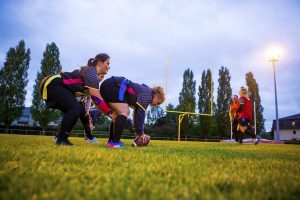 … ist eine Ballsportart, die auf den Spielelementen des American Football basiert. Es besteht ein großer Unterschied zum American Football: Das Körperliche steht bei dieser Variante nicht so im Vordergrund wie beim American Football. Die Defense stoppt den ballführenden Spieler der Offense nämlich nicht, indem er zum Tackle ansetzt, sondern ihm die „Flag“ (Flagge) aus dem Gürtel zieht. Die gebräuchlichste Spielvariante ist 5on5 – also fünf gegen fünf Spieler.