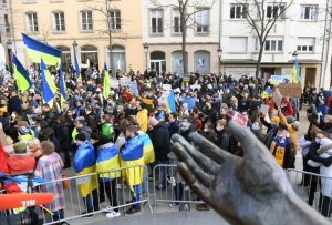 LUkraine asbl., ein Verein von Menschen mit ukrainischen Wurzeln in Luxemburg, hatte für den Samstagmorgen (26.2.) zu einem erneuten Protest gegen das Vorgehen Russlands in der Ukraine aufgerufen – und bis zu 800 Menschen waren dem zeitweise gefolgt. Diese Zahl nannte die Polizei auf Anfrage des Tageblatt. Auffälligkeiten zur Kundgebung auf dem Clairefontaine-Platz hatte die Polizei nicht zu vermelden.