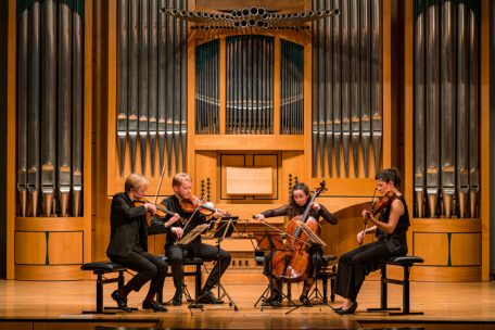 Alain spannt den BogenStreicher im Mittelpunkt: Das Marmen Quartet und Tabea Zimmermann
