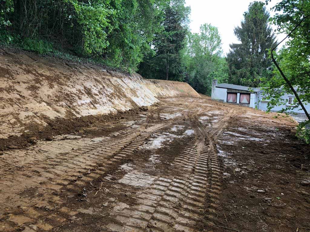 Neben dem Grundstück wurden Bäume gefällt und Erdmassen bewegt.