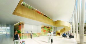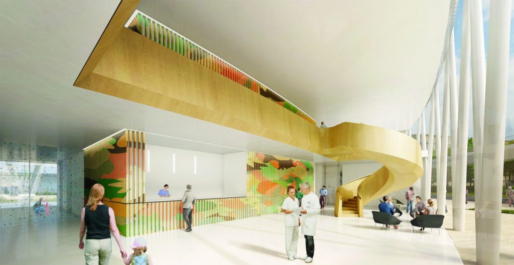 Der Qualitätssprung im neuen Klinikum soll aber auch anderswo sichtbar werden als nur in den Patientenzimmern. „Das Krankenhaus der neuen Generation“, wie es die frühere Gesundheitsministerin Lydia Mutsch nannte, setzt auch auf ein schönes Ambiente und kurze Wege. Lifte, beispielsweise für Menschen im Rollstuhl, wird es natürlich immer geben, insgesamt aber werden es weniger sein, stattdessen dann Rolltreppen. Das sei weniger beengend und schneller, und es erlaube einen permanenten Fluss innerhalb des Krankenhauses, so Mischo und Reimer.
