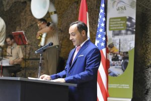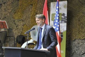 Anschließend ergriff „Deputy Chief of Mission for the Embassy of the United States of America“ Casey K. Mace das Wort. Es sei ihm eine große Ehre, dabei sein zu dürfen. Er erwähnte, dass inzwischen insgesamt 95 Prozent des Materials der US Air Force in Sanem gelagert werden und dass der US-Kongress am Ausbau der US Air Force arbeite. Dies könnte bedeuten, so Mace, dass sich das Personal der WSA verdoppele. „Diese weitere Zusammenarbeit beider Länder kann und wird uns eine Garantie für den Frieden geben“, so der Deputy Chief.